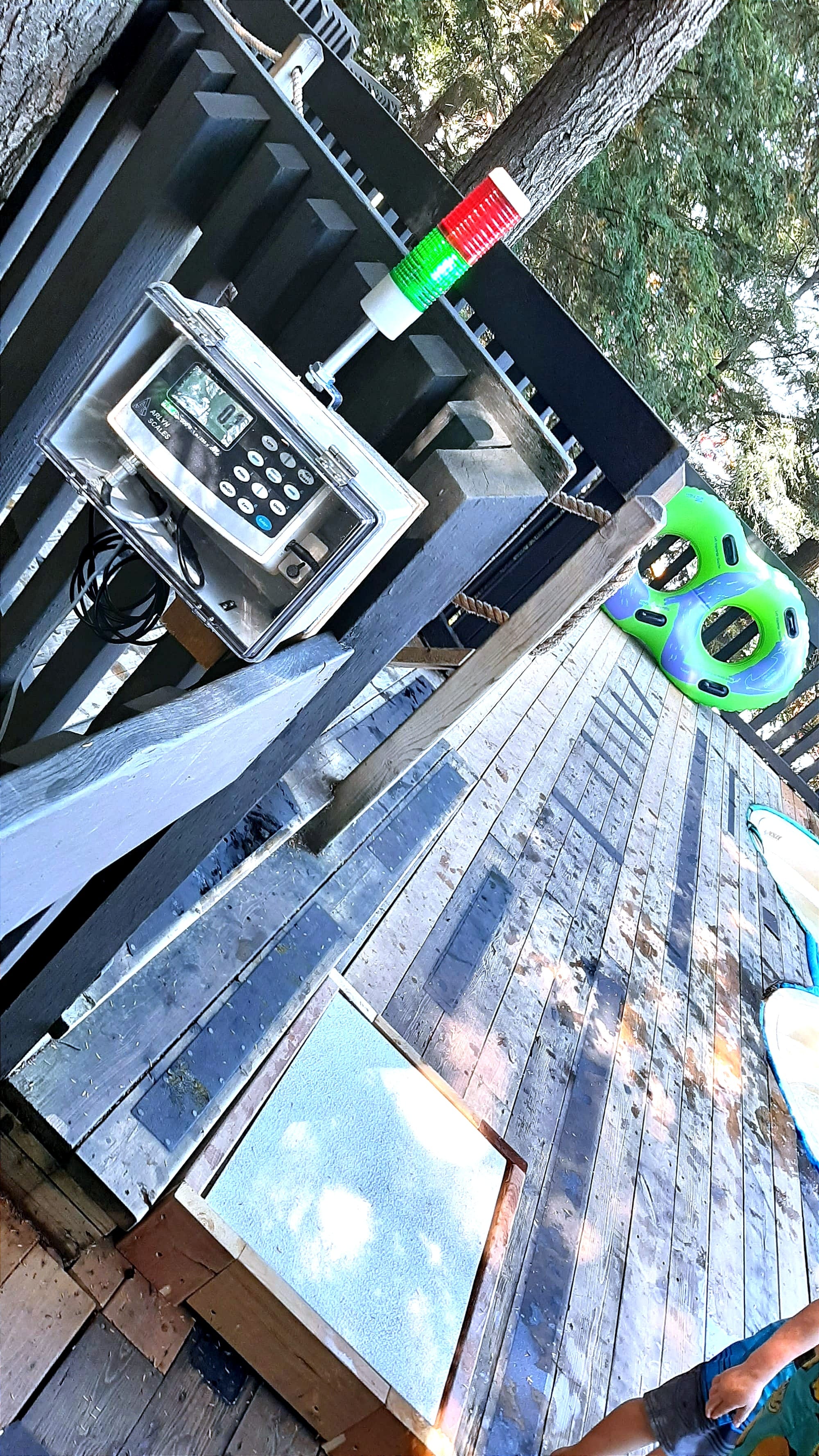 If you're wondering about what "discrete" options exist in terms of weight scales for water slide scales, here is a platform at Mont Cascades, Quebec - owned by ProSlide - that provides a simple red/green light system when someone is under/over the slide's operating parameters. The slider's actual weight is visible to the lifeguard or slide attendant, but not the riders queuing off to the side.