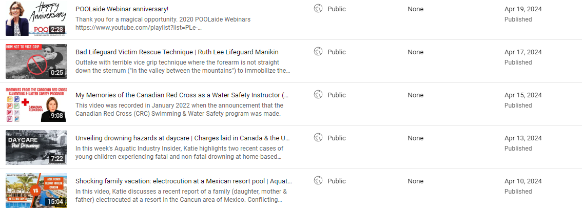 Please consider subscribing to the YouTube channel to receive updates as new videos are released. They are not all under the Aquatic Industry Insider heading, some are interviews; presentations; pool equipment and skill demos as my schedule allows.