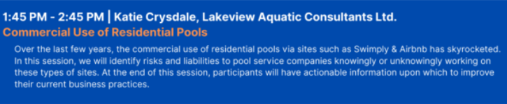 If you've followed my work for any length of time, especially on Facebook, you know I have strong opinions about private (residential) pool rentals, including the companies that promote them. I'm thrilled the organizing committee is allowing me to speak on this urgent and important topic. Don't worry if you can't attend: the session is not exclusive, so I'll be recording it for our YouTube channel immediately after the live session.