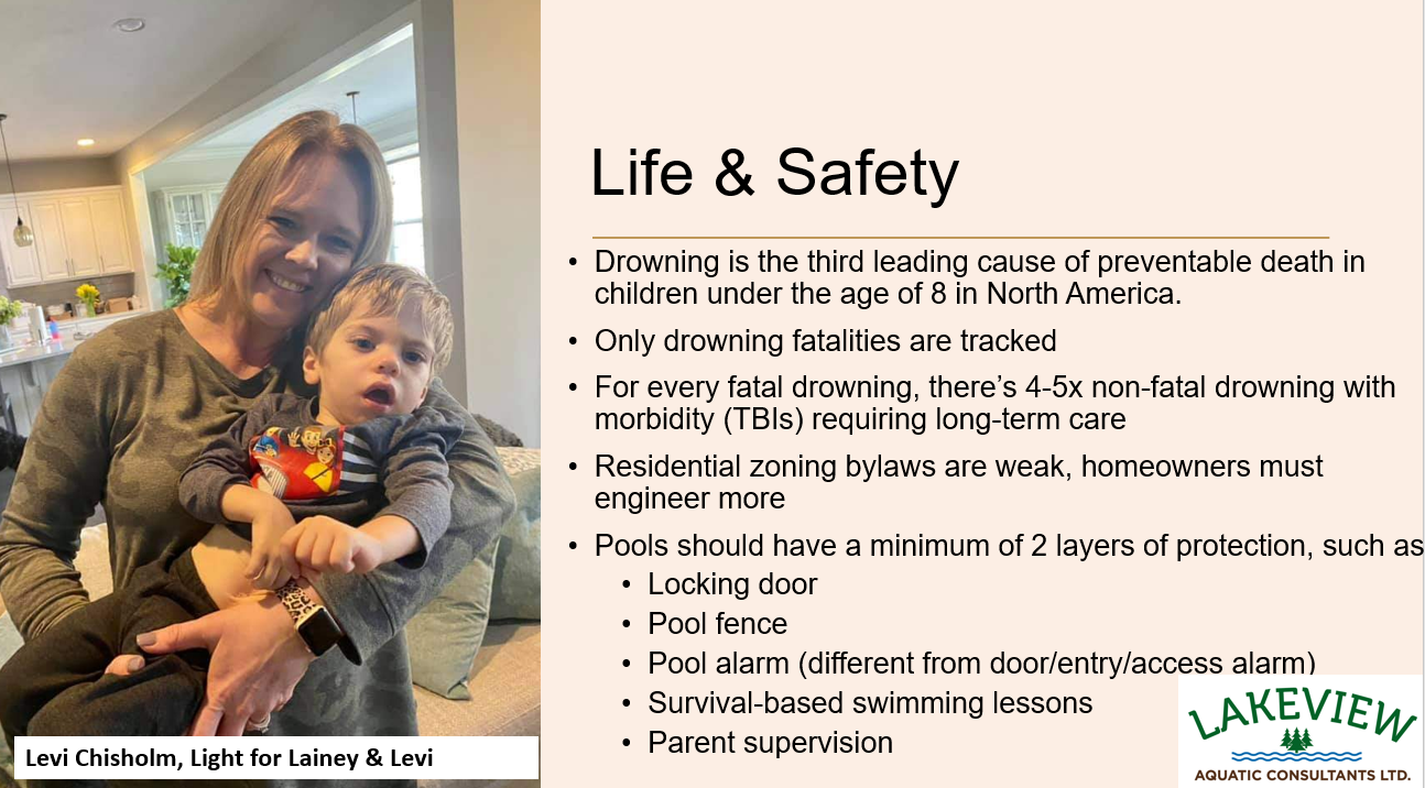 She cried, he said this was a good wakeup call. The inground pool was built with a beautiful glass fence; she enrolled the child in self-rescue swim lessons (not my suggestion); and I connected her to a residential drowning technology manufacturer for a possible partnership and to ensure the family had several layers of protection. We all went on our merry way.